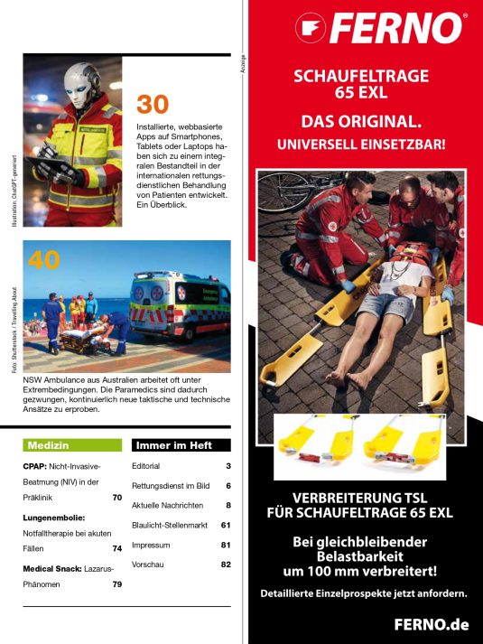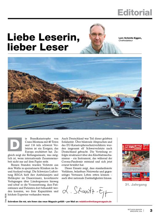 Jede Ausgabe bietet fundierte Fachbeiträge, praxisnahe Einsatzberichte sowie aktuelle Entwicklungen aus Medizin, Technik und Organisation. Ziel ist es, relevantes Wissen verständlich, kritisch und anwendungsorientiert aufzubereiten – für den Einsatzalltag ebenso wie für strategische Fragestellungen im Rettungsdienst.