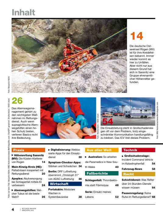 Das Rettungs-Magazin ist das führende deutschsprachige Fachmagazin für Rettungsdienst, Notfallmedizin und präklinische Versorgung.